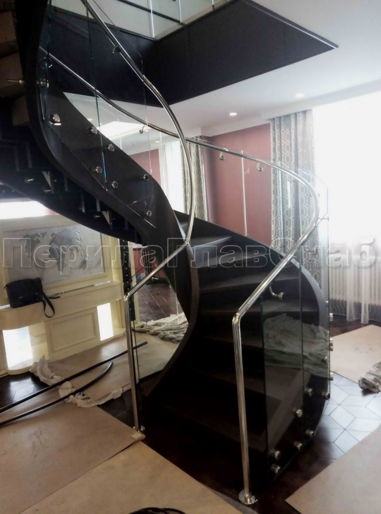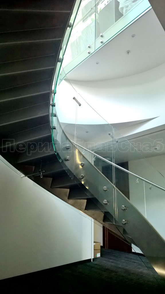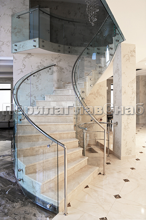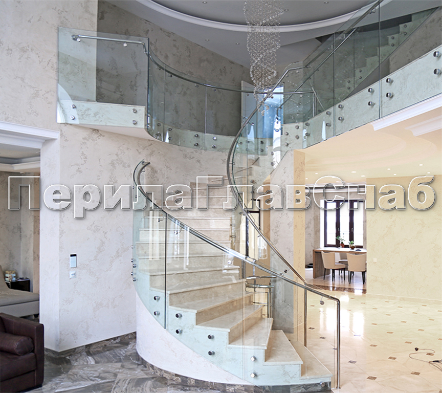 Стеклянные ограждения винтовой лестницы и баллюстрады в Омске. Готовые проекты ПерилаГлавСнаб