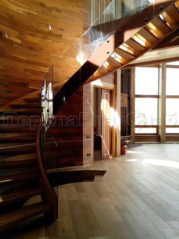 Стеклянные ограждения винтовой лестницы и баллюстрады