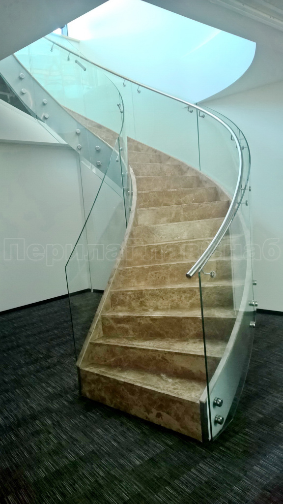 Стеклянные ограждения винтовой лестницы и баллюстрады в Омске. Готовые проекты ПерилаГлавСнаб - фото 1