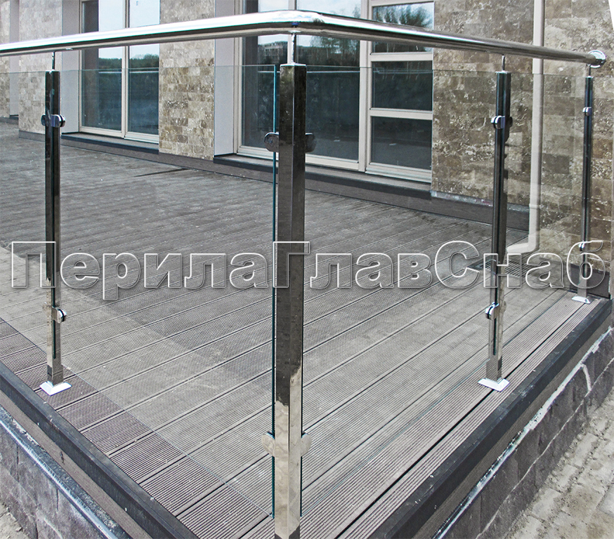 Стеклянные ограждения для террасы на профилеСтекло может быть установлено в зажимной алюминиевый профиль. Для стекол разной толщины и высоты мы разработали и изготовили собственные запатентованные системы зажимных профилей, которые выдерживают нагрузки до 5кН согласно СП 20.13330.2016. Для вас это означает, что установленные «ПерилаГлавСнаб» стеклянные ограждения будут соответствовать строительным нормам безопасности эксплуатации. |