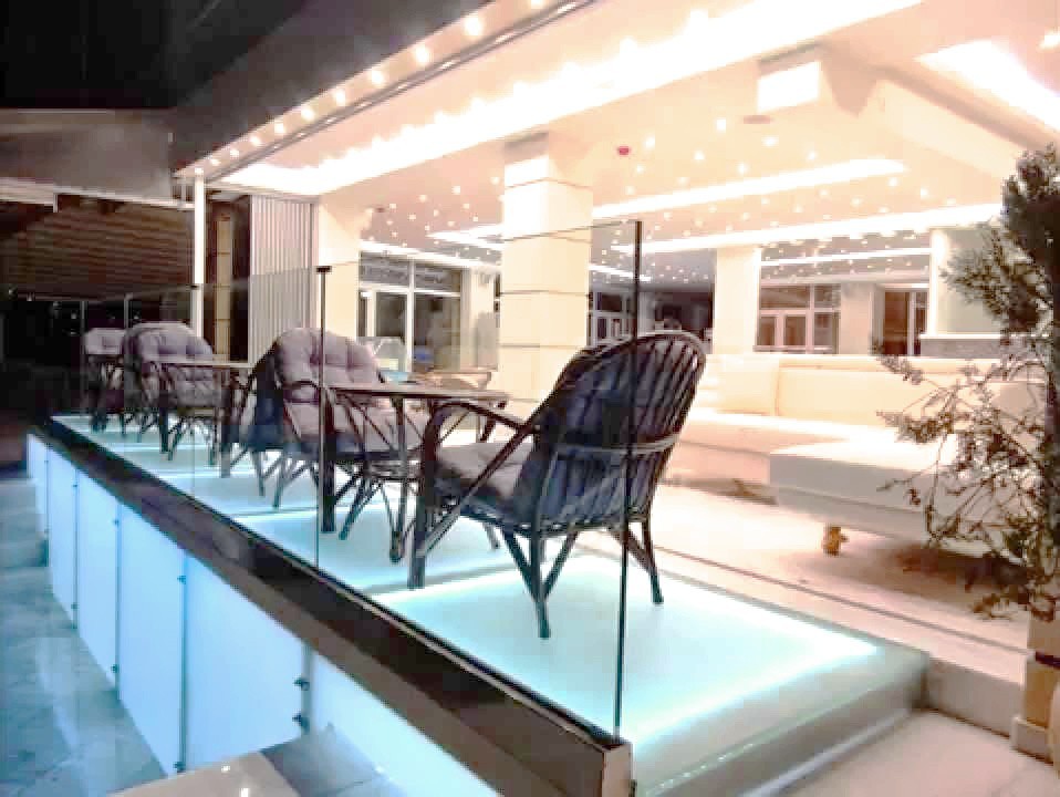Подсветка стеклянного пола в гостинице в Омске. Готовые проекты ПерилаГлавСнаб