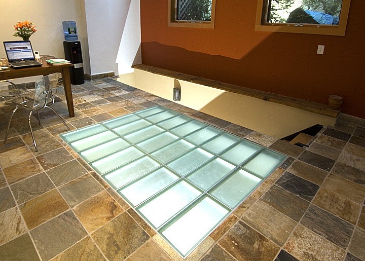 Люминесцентная подсветка стеклянного блочного пола в Омске. Готовые проекты ПерилаГлавСнаб