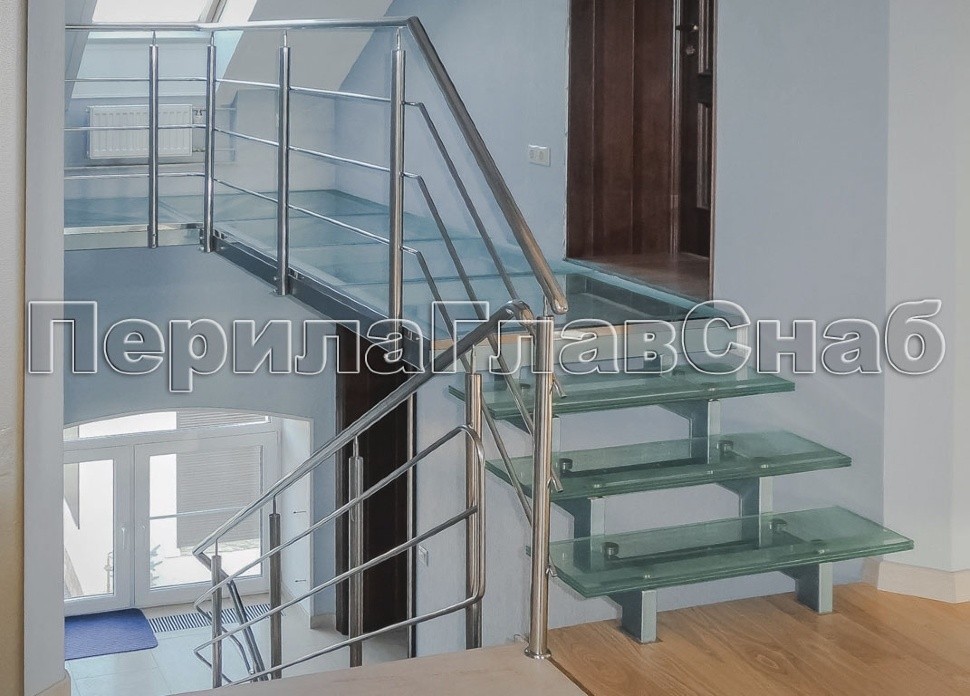Стеклянные ступени и стеклянная площадка на лестнице в Омске. Готовые проекты ПерилаГлавСнаб - фото 1