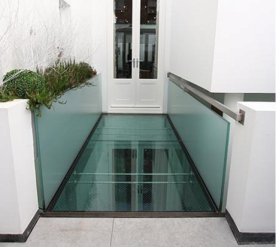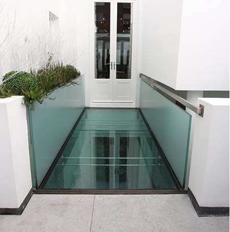 Стеклянное перекрытие из матового стекла на внутреннем балконе