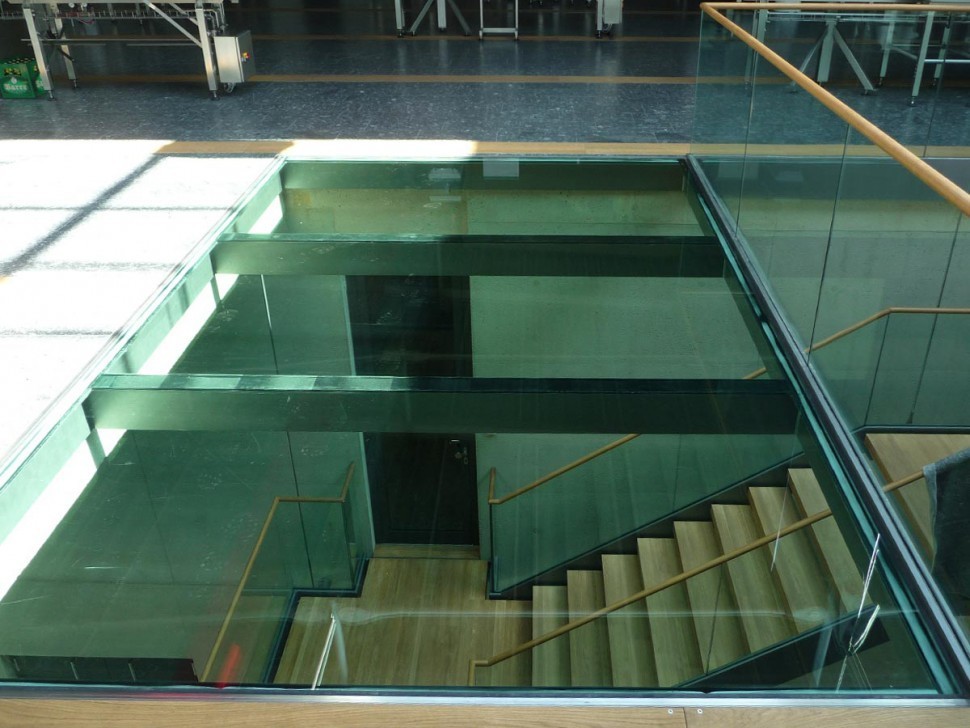 Стеклянный потолок на межэтажной площадке