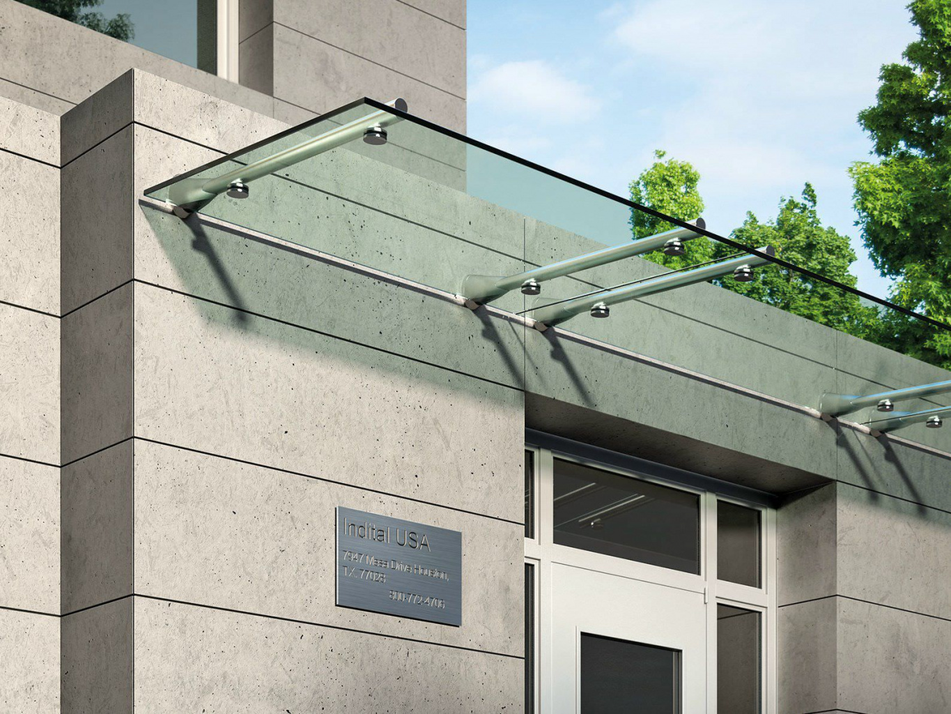 Стеклянный козырек на консоли из трубы